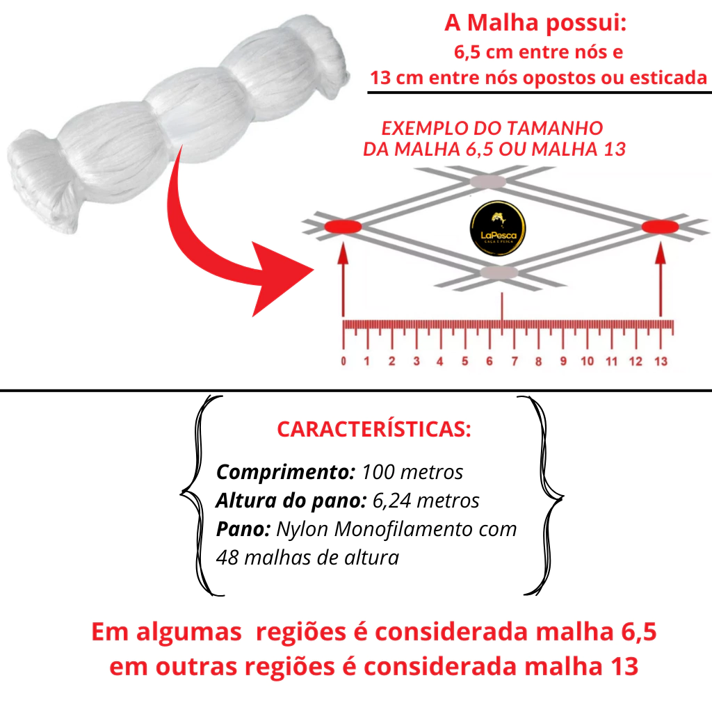 Para ser utilizado, este pano de pesca necessita ser entralhado, podendo o mesmo ser tanto na metade do seu tamanho, em dois terços do seu tamanho, ou conforme condição que melhor atenda sua necessidade.