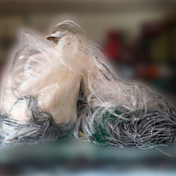 A rede de pesca tipo feiticeira é confeccionada em linha de nylon monofilamento.