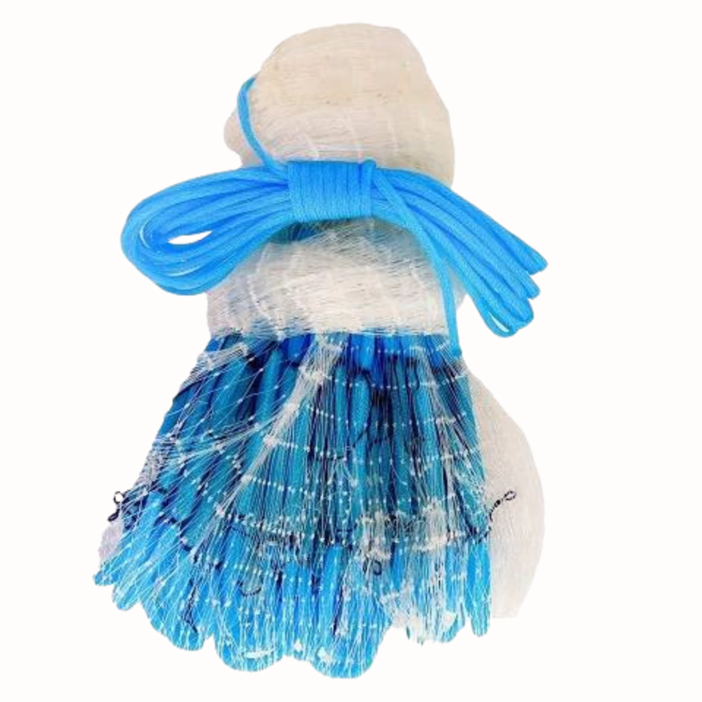 Tarrafa de pesca confeccionada em linha de nylon monofilamento.