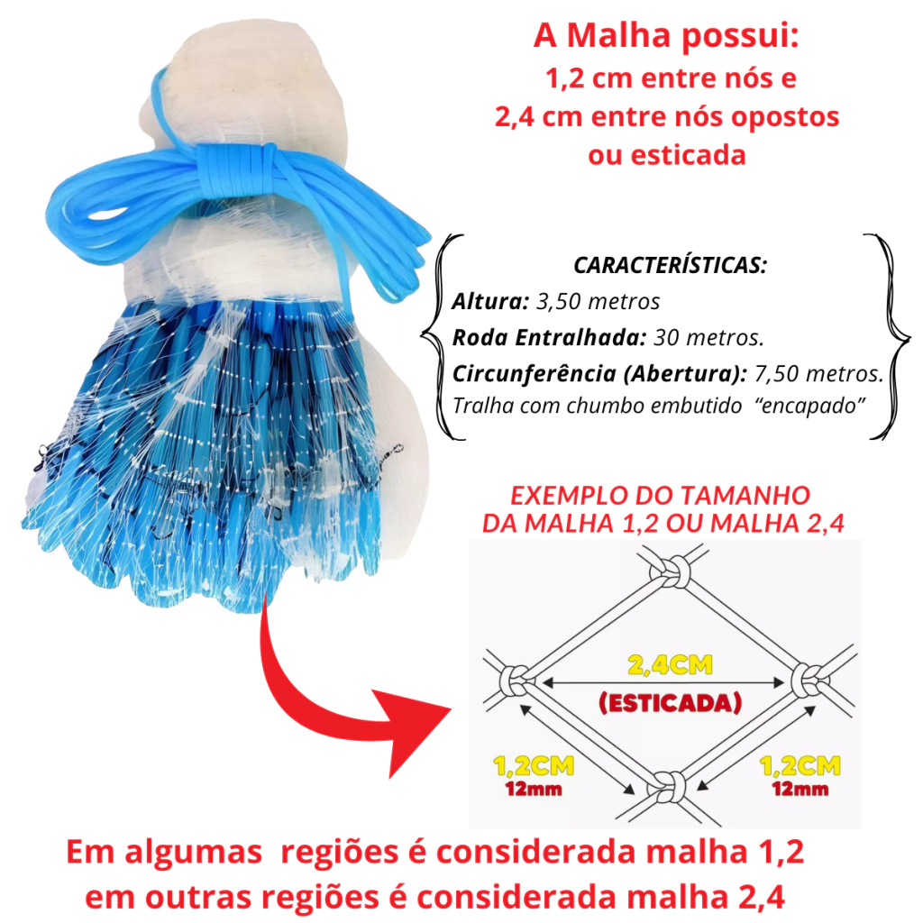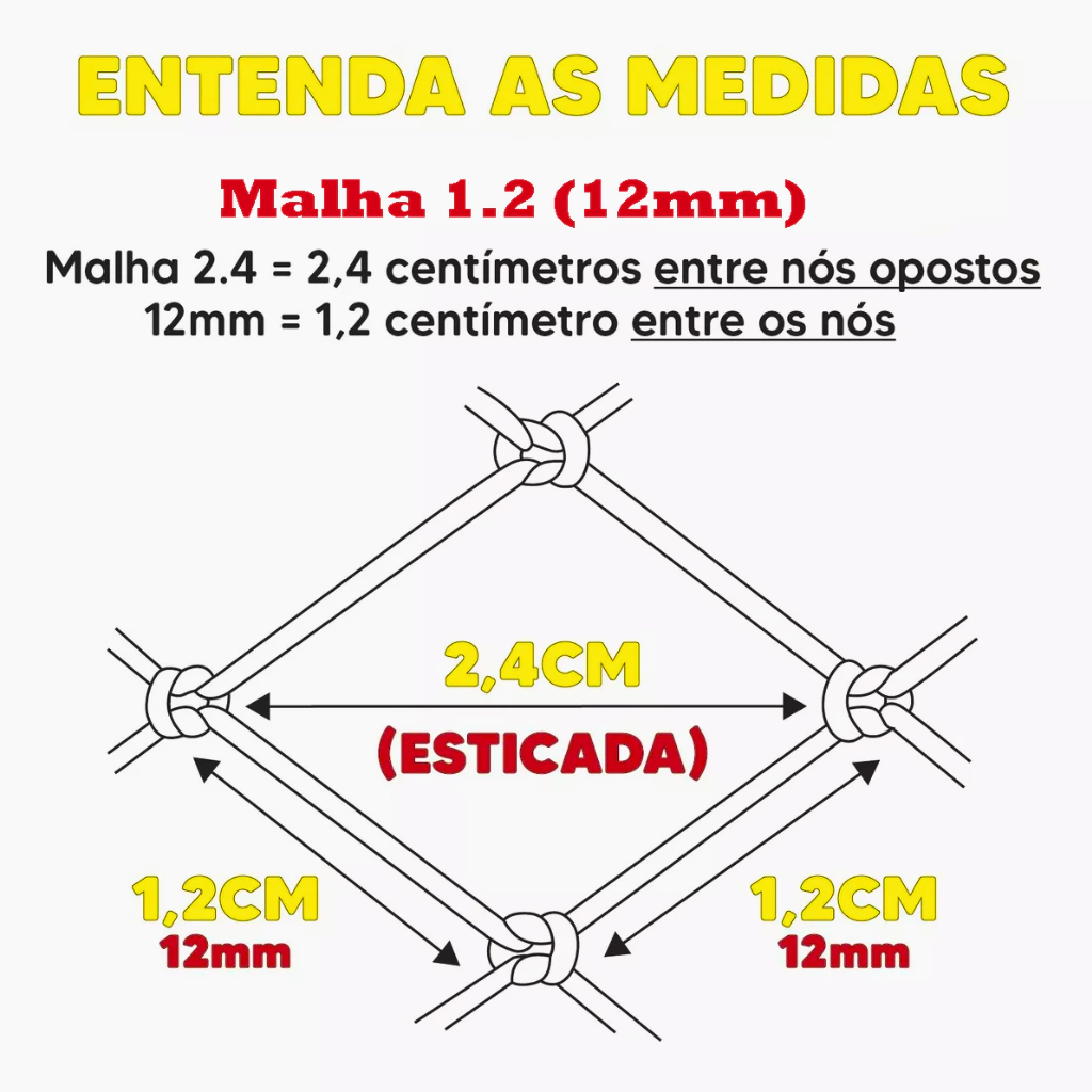 IMPORTANTE.: Para melhor compreensão, verificar as descrições nos itens das ESPECIFICAÇÕES e verificar as fotos com exemplos da Malha, Altura, Comprimento da Roda Entralhada e Comprimento da Circunferência.