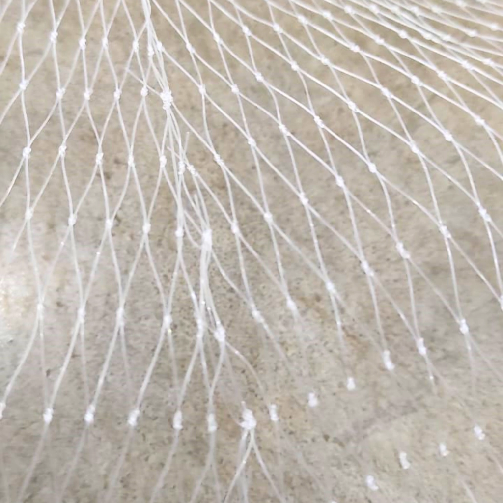 Tarrafa de pesca confeccionada em linha de nylon monofilamento.