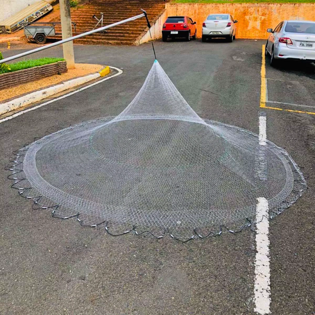 Tarrafa de pesca confeccionada em linha de nylon monofilamento.